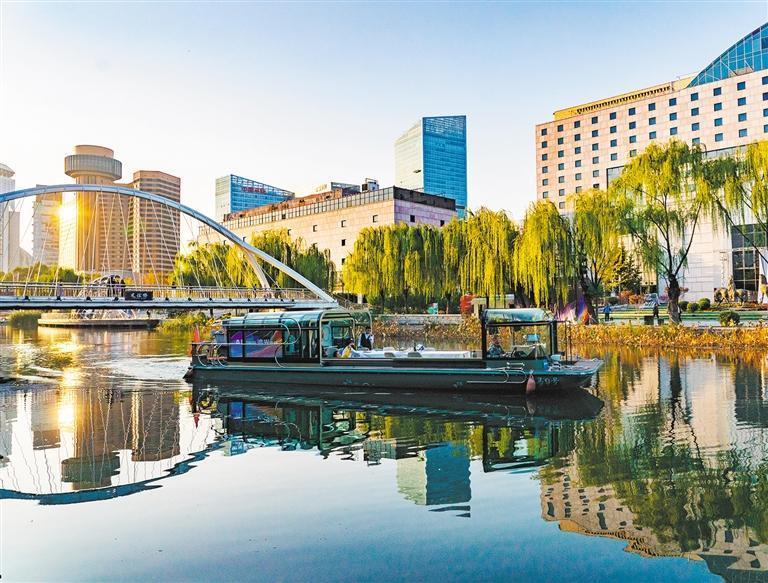 10月28日拍攝的亮馬河國際風(fēng)情水岸景觀。朝陽區(qū)以河道復(fù)興帶動(dòng)城市更新,打造了自然生態(tài)河岸和濱水景觀帶。