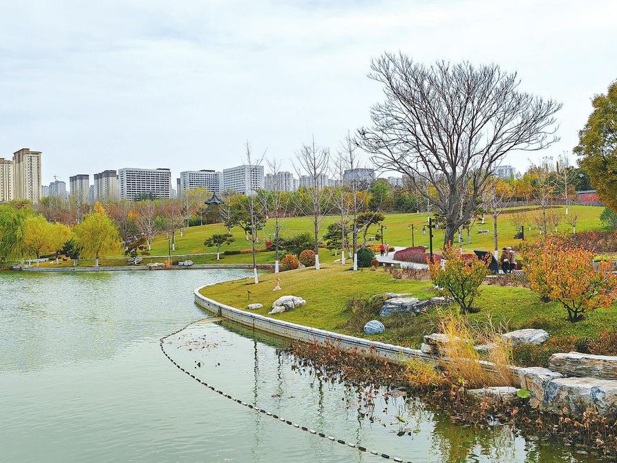 近日,太原雙塔寺景區(qū)內(nèi),各類樹木與清澈的湖水、古色古香的仿古建筑相映成趣。游客漫步其間,仿佛置身于一幅色彩斑斕的畫卷之中,沉浸式感受生態(tài)之美與自然之趣。楊家煒 攝