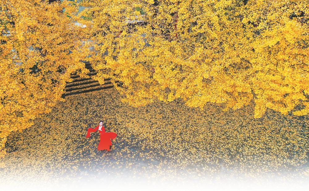漫天銀杏舞 (楊武 攝于崇州市罨畫池)