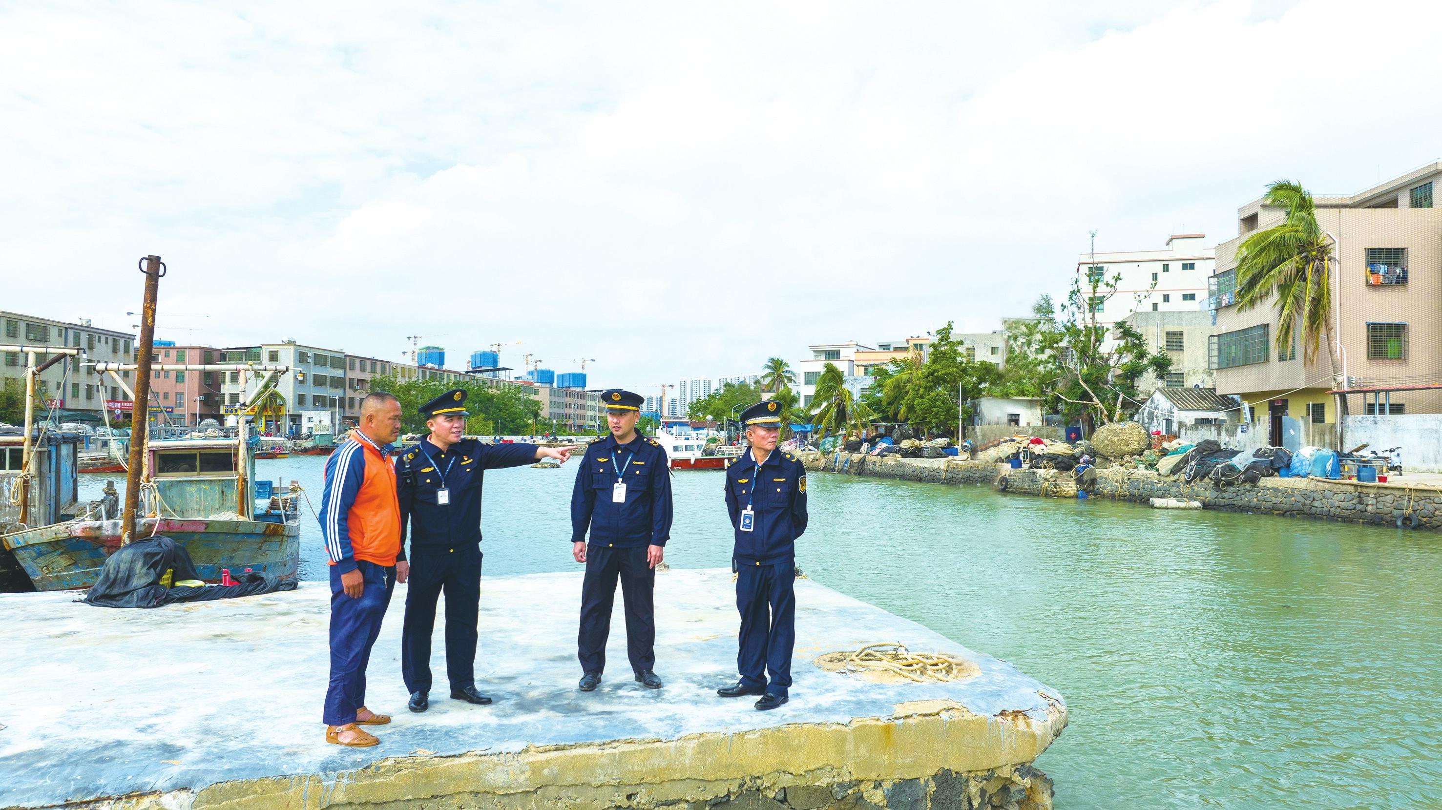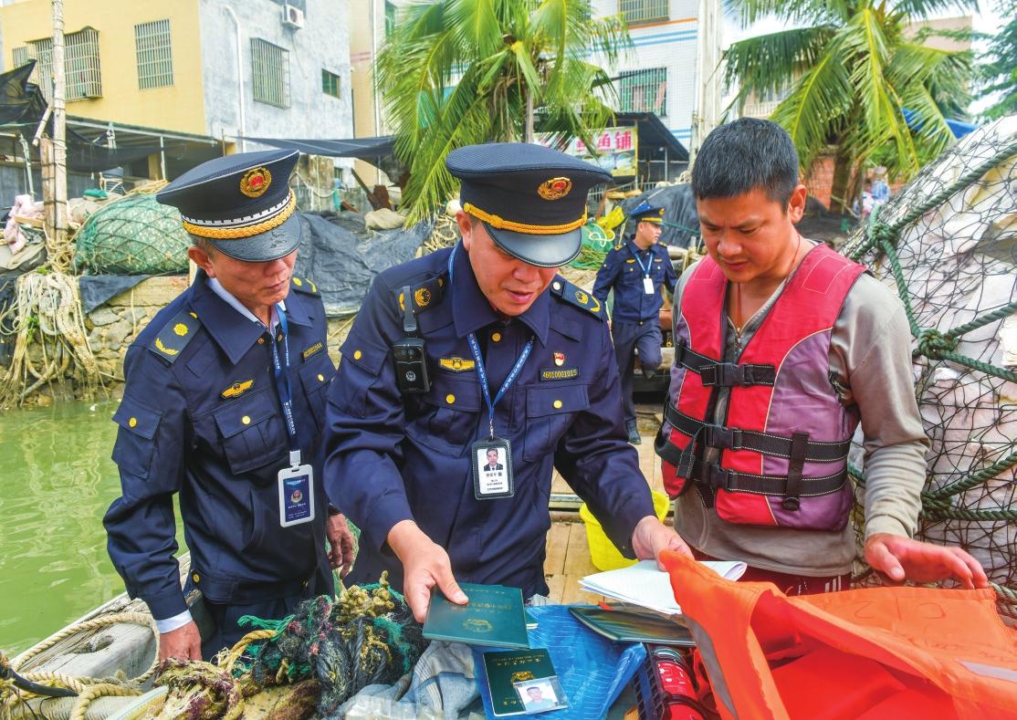 執(zhí)法人員向村委會(huì)工作人員了解漁船進(jìn)出港情況。