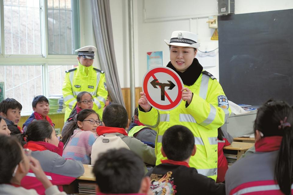 知危險會避險,交通安全進校園。3月3日,太原市公安局交警支隊迎澤一大隊民警謝蕾在迎澤區(qū)港道小學(xué)開展安全教育進校園活動,以互動識標(biāo)、圖文漫畫等多種形式,多維度宣傳學(xué)生步行、騎行、乘車交通安全常識,提升學(xué)生交通安全意識和自我防護能力。任偉國 攝