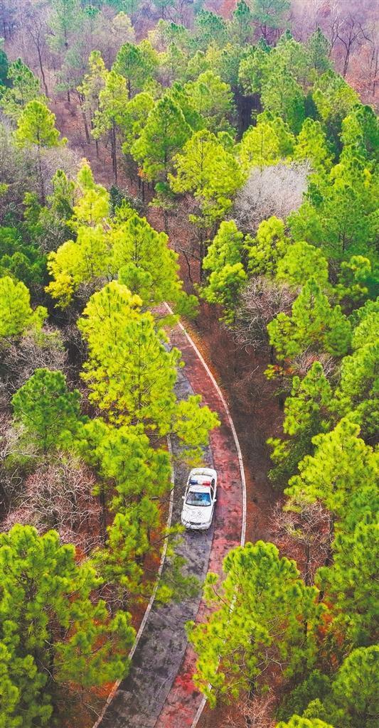 3月5日,民警在江蘇省宿遷市三臺山國家森林公園進行火災(zāi)隱患巡查。