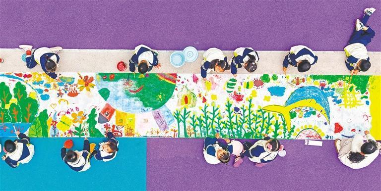 3月11日,浙江省臺州市仙居縣迎暉幼兒園的孩子們參與植樹節(jié)主題繪畫活動。