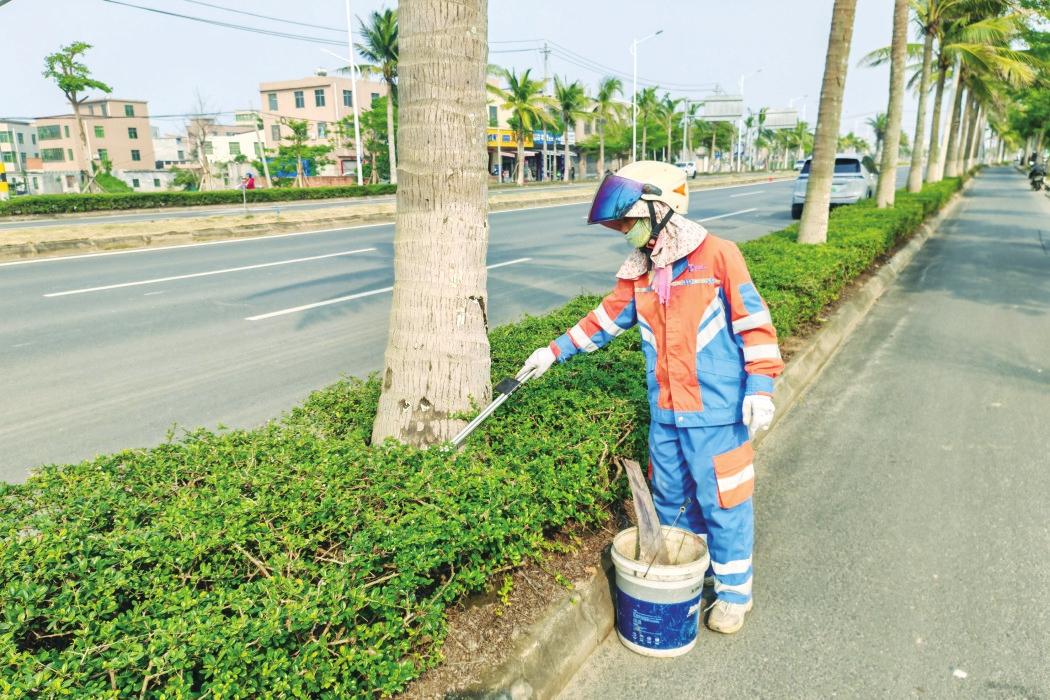 海口京蘭公司加大重點(diǎn)區(qū)域撿拾頻次。王慧盈 攝