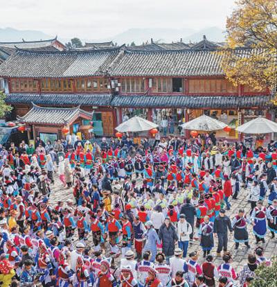 麗江古城涵蓋了作為茶馬古道重鎮(zhèn)的大研古城、從農(nóng)耕文明向商業(yè)文明過渡的“活標(biāo)本”束河古鎮(zhèn)、有著原生態(tài)納西村落的白沙古鎮(zhèn),融匯了漢族、白族、彝族、藏族、納西族等多民族文化特色。作為一座沒有城墻的古城,麗江古城以包容與開放的姿態(tài),歷經(jīng)文化的交融與碰撞,源源不斷地孕育出充滿魅力的文化新形態(tài)。