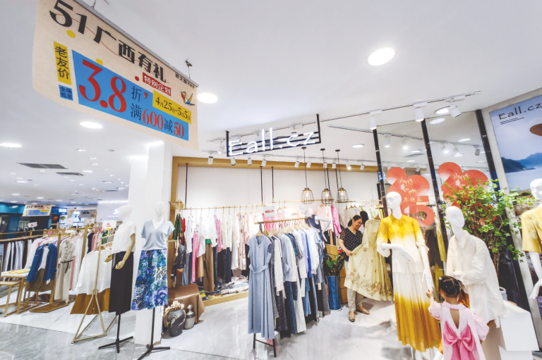 假日期間,南寧各大商場推出滿減、折扣等優(yōu)惠活動,萬象城、萬達茂、夢之島百貨等商場人頭攢動,人們在服飾、電子產(chǎn)品、美妝等專柜前挑選心儀的商品。