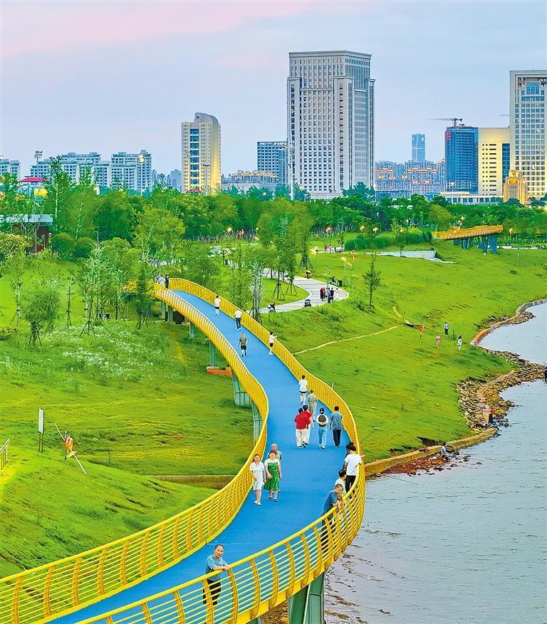 6月14日,江西省南昌市紅谷灘區(qū)贛江市民公園,漫游長廊、休閑步道、兒童樂園等功能型、游樂類設施成為市民健身鍛煉的好去處。近年來,當?shù)胤e極建設城市綠色通道和生態(tài)景觀長廊,并通過水系治理、岸線整治、濕地修復、增添設施等措施,打造風景秀麗、功能多樣的主題公園,讓群眾樂享“15分鐘健身圈”。朱海鵬攝(中經(jīng)視覺)