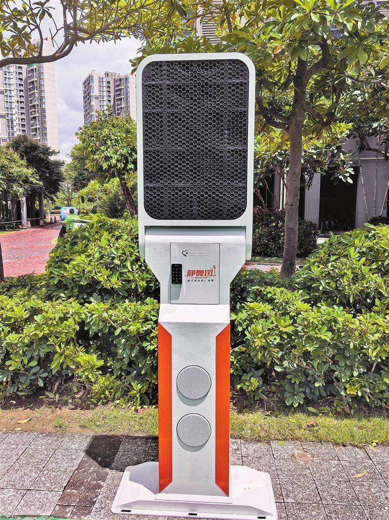 晚上7時,家住新安街道安樂社區(qū)的居民汪阿姨吃過晚飯后,如約來到社區(qū)廣場和舞伴們跳起最近新學(xué)的廣場舞。但奇怪的是,雖然阿姨們跳得很盡興,在附近的居民幾乎不受影響?!耙驗槲覀冇羞@個‘秘密武器’?!蓖舭⒁讨钢鴱V場上“定向音柱”介紹道,“它的神奇之處就是將聲音鎖定在一定范圍,超出這個范圍就幾乎聽不到什么聲音了。”