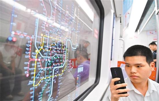 5月7日,重慶軌道交通1號(hào)線列車(chē)智慧車(chē)窗,乘客在透明OLED顯示屏上查看線路、前方到站、3D站臺(tái)、周邊景點(diǎn)等信息。重慶市已打造多個(gè)智慧車(chē)站,采用智慧安防、智能開(kāi)關(guān)站、客流智能分析預(yù)測(cè)等技術(shù),為乘客帶來(lái)全新的出行體驗(yàn)。孫凱芳 攝(中經(jīng)視覺(jué))