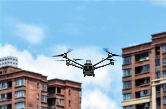7月23日,北碚區(qū)城區(qū),一架智能無(wú)人機(jī)在空中巡邏助力智慧城市管理。特約攝影 秦廷富/視覺(jué)重慶