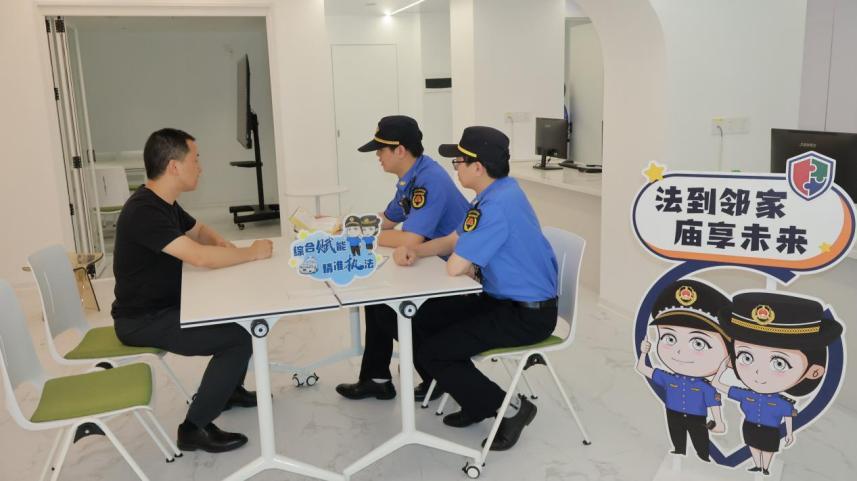 在鐘公廟街道,綜合執(zhí)法隊為商戶打造“10分鐘服務(wù)圈”。3家“法到鄰家”基層執(zhí)法工作室在繁鬧的萬達(dá)商圈、恬靜的咖啡館等街頭巷尾處,將服務(wù)觸角延伸至“抬腳一步路”。商戶可以通過“益企服”平臺預(yù)約執(zhí)法人員上門排查隱患,商戶的查漏補(bǔ)缺變得“像點外賣一樣快捷”?!胺ㄖ紊除垺鄙希虘艨膳c執(zhí)法人員、駐點律師面對面,對經(jīng)營中遇到的難題暢所欲言,將經(jīng)營中的“煩心事”變成“好方法”。政企之間的交流不再只有冷冰冰的執(zhí)法條款,更多是街坊鄰里間“抬腳即達(dá)”的便利和溫暖。