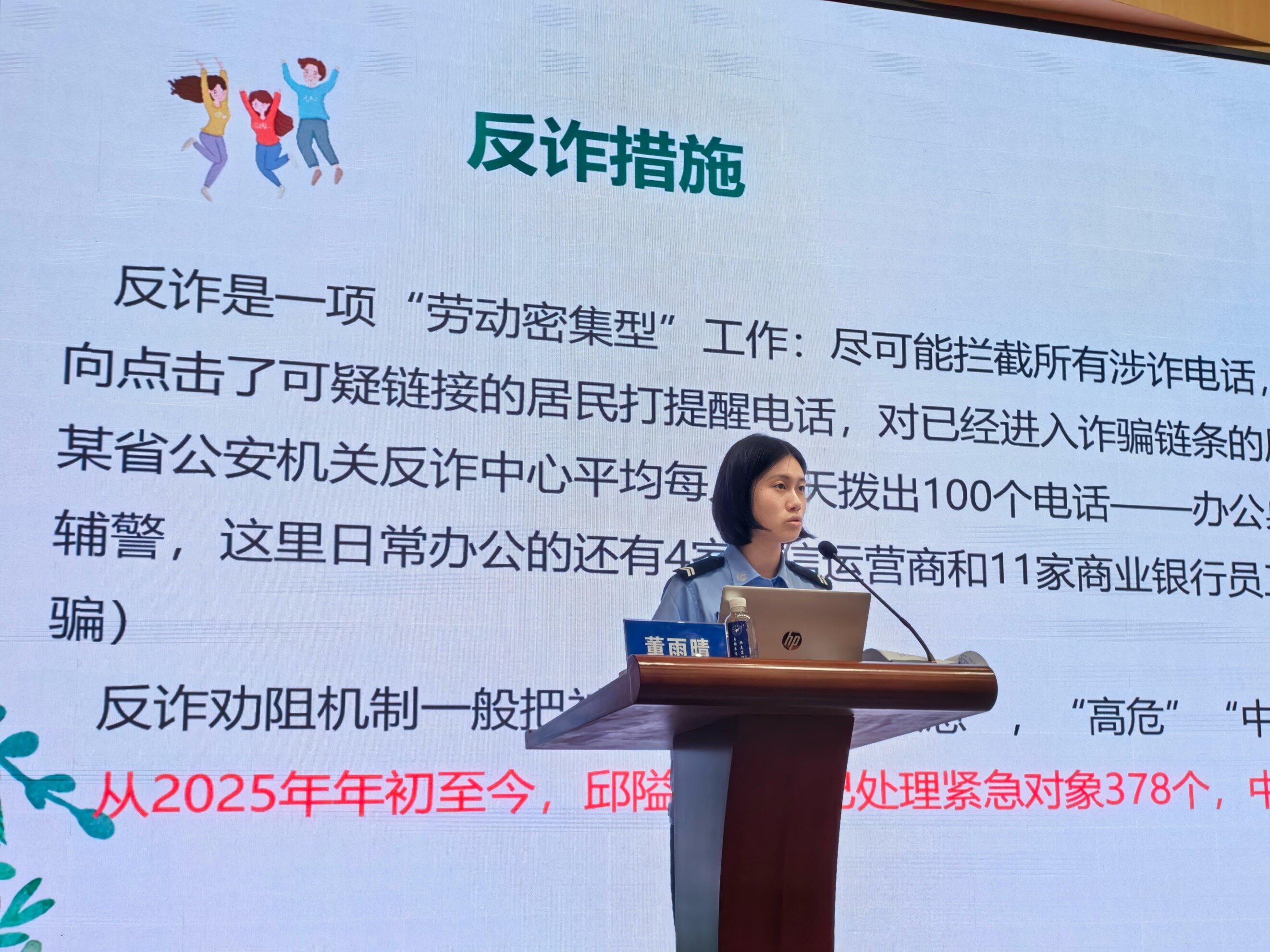 反詐課堂上,民警系統(tǒng)梳理出14種校園高發(fā)詐騙類型,結(jié)合真實(shí)案例逐一剖析騙局套路,并總結(jié)出實(shí)用的識(shí)破技巧與應(yīng)對(duì)策略,幫助學(xué)生建立全面的防詐意識(shí)。