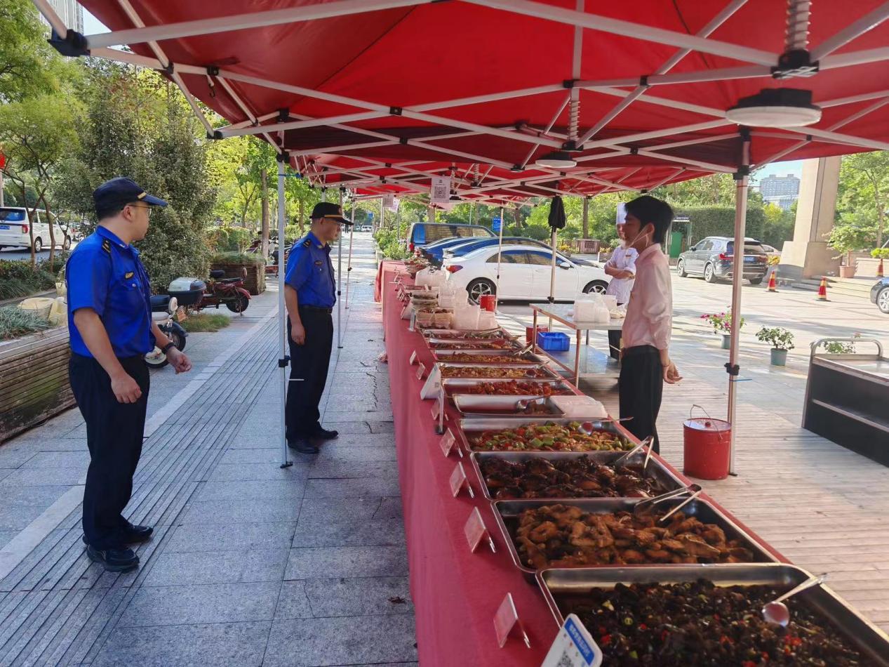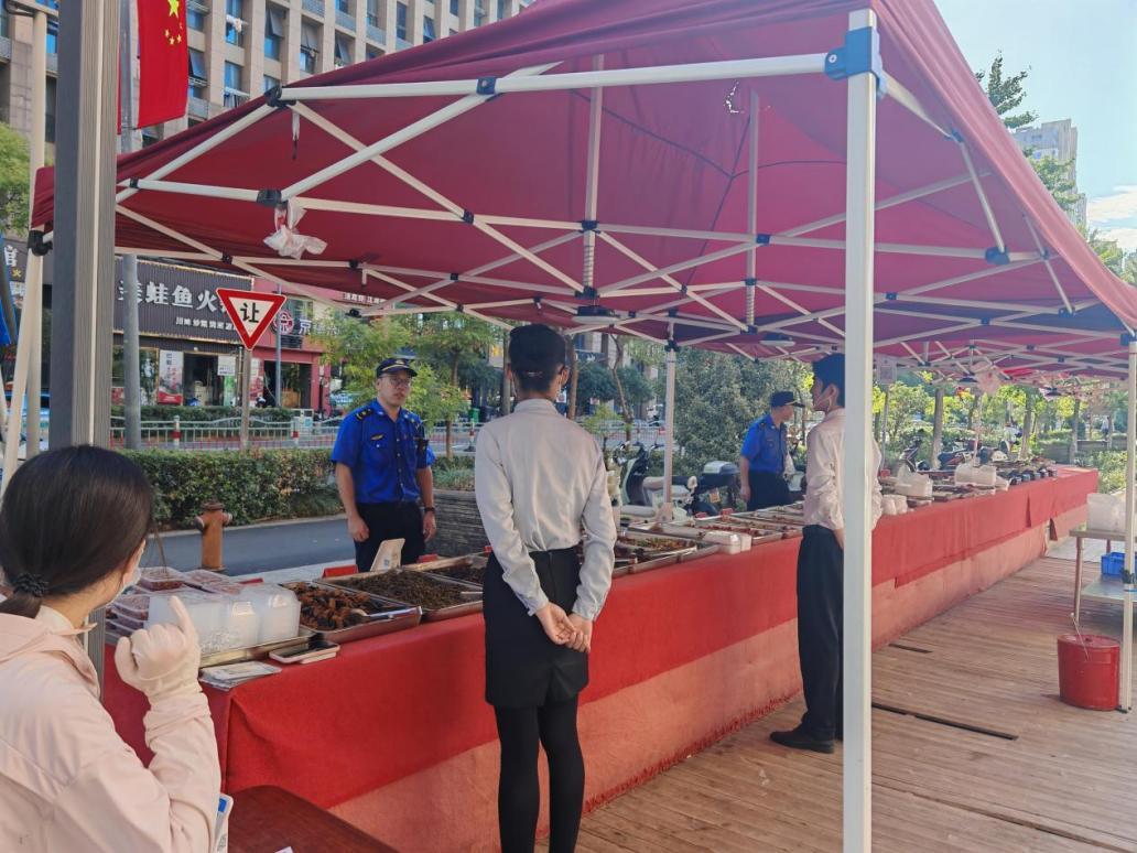 執(zhí)法隊(duì)結(jié)合轄區(qū)交通流量、人口密度及商業(yè)業(yè)態(tài)布局,開展專項(xiàng)調(diào)研評(píng)估,精準(zhǔn)劃定外擺區(qū)域與臨時(shí)占道經(jīng)營點(diǎn)位:在小浹江菜場周邊,明確早市、晚市等居民消費(fèi)集中時(shí)段允許規(guī)范經(jīng)營攤位外擺;在渡口南路餐飲聚集區(qū),支持商戶臨時(shí)占用劃定范圍內(nèi)的人行道擺放桌椅。此舉在便利居民日常生活的同時(shí),有效拉動(dòng)了夜間消費(fèi),讓轄區(qū)“煙火氣”愈發(fā)濃郁。