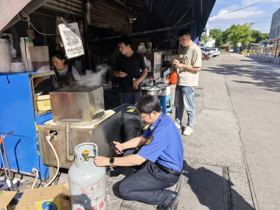 在整治過程中執(zhí)法人員對商鋪的燃?xì)馄康陌踩褂眠M行詳細(xì)檢查,包括訂氣溯源,瓶口閥門,氣密安全等。執(zhí)法人員提醒商戶規(guī)范擺放物品,告知商鋪經(jīng)營線內(nèi)只能放置經(jīng)營物品,其他雜物不允許擺放。同時,對商家燃?xì)?、灶具的安全使用,餐飲環(huán)境衛(wèi)生、食品安全等進行了全方位的細(xì)致檢查。為學(xué)生營造一個健康、安全的飲食環(huán)境。