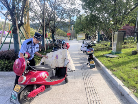 圖為執(zhí)法人員在景區(qū)規(guī)范電瓶車停放