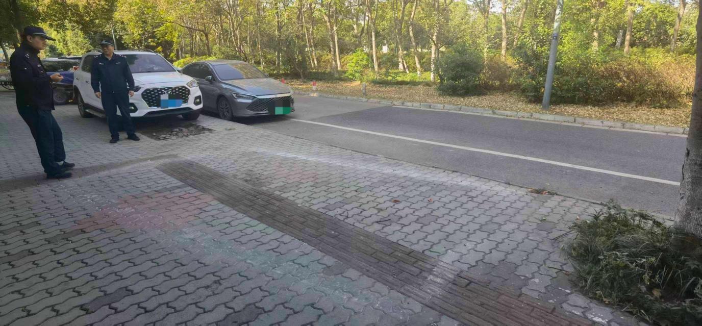 此前,執(zhí)法部門多次接到市民反饋,稱北侖區(qū)遼河路某小區(qū)人行道車輛亂?,F(xiàn)象突出,部分車輛不僅占用行人通行空間,更頻繁占壓盲道,導(dǎo)致行人出行受阻,尤其是特殊人群難以安全通過?!懊刻炻愤^這里都得小心翼翼,有時(shí)候車直接停在盲道上,盲人朋友根本沒法走,太危險(xiǎn)了?!备浇用裢跸壬谕对V時(shí)無奈表示。