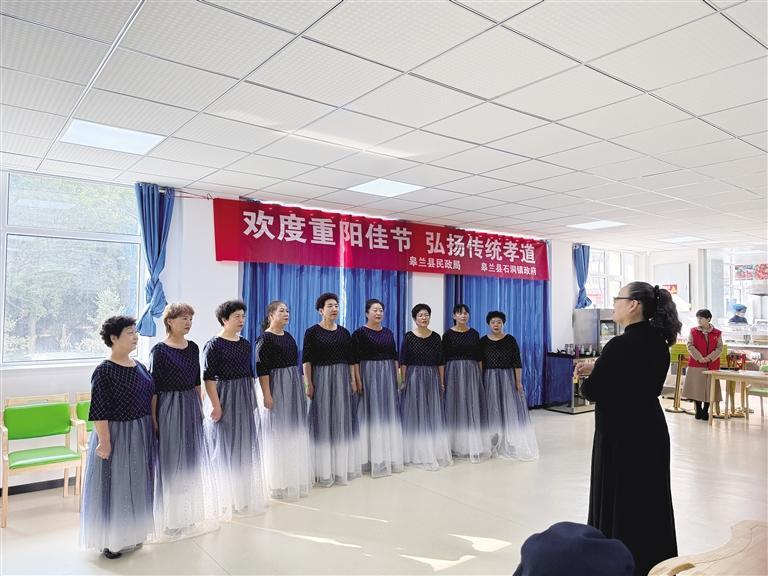 在楊惠巧的帶領下,記者從城中社區(qū)黨群服務中心出發(fā),步行10分鐘來到社區(qū)幸福食堂。這里正在開展重陽節(jié)主題活動?!拔覀円陨鐓^(qū)幸福食堂為陣地,定期舉辦一些活動,老人們參與度挺高的,社區(qū)工作人員也會在活動期間開展志愿服務?!睏罨萸烧f。