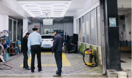 從源頭規(guī)范排水行為后,執(zhí)法人員進(jìn)一步聚焦設(shè)備維護(hù)和作業(yè)流程?!跋窜噺U水必須經(jīng)過嚴(yán)格沉淀過濾方能排入市政管網(wǎng)?!眻?zhí)法人員強(qiáng)調(diào)。在后院檢查時(shí),他們發(fā)現(xiàn)部分店鋪沉淀池長期未清掏,幾乎失去過濾功能,排水口也缺失防護(hù)網(wǎng)?!氨仨毚_保排出的每一滴水都‘清清白白’?!眻?zhí)法人員一邊開具整改通知書,一邊演示過濾設(shè)備使用方法。針對(duì)兩家占道洗車、污水外流的店鋪,執(zhí)法人員現(xiàn)場教育:“污水流到路面上,不僅影響市容,還可能讓行人滑倒!”通過現(xiàn)場指導(dǎo),執(zhí)法隊(duì)幫助商戶建立規(guī)范化操作流程,讓洗車作業(yè)從“隨意粗放”走向“精細(xì)可控”。