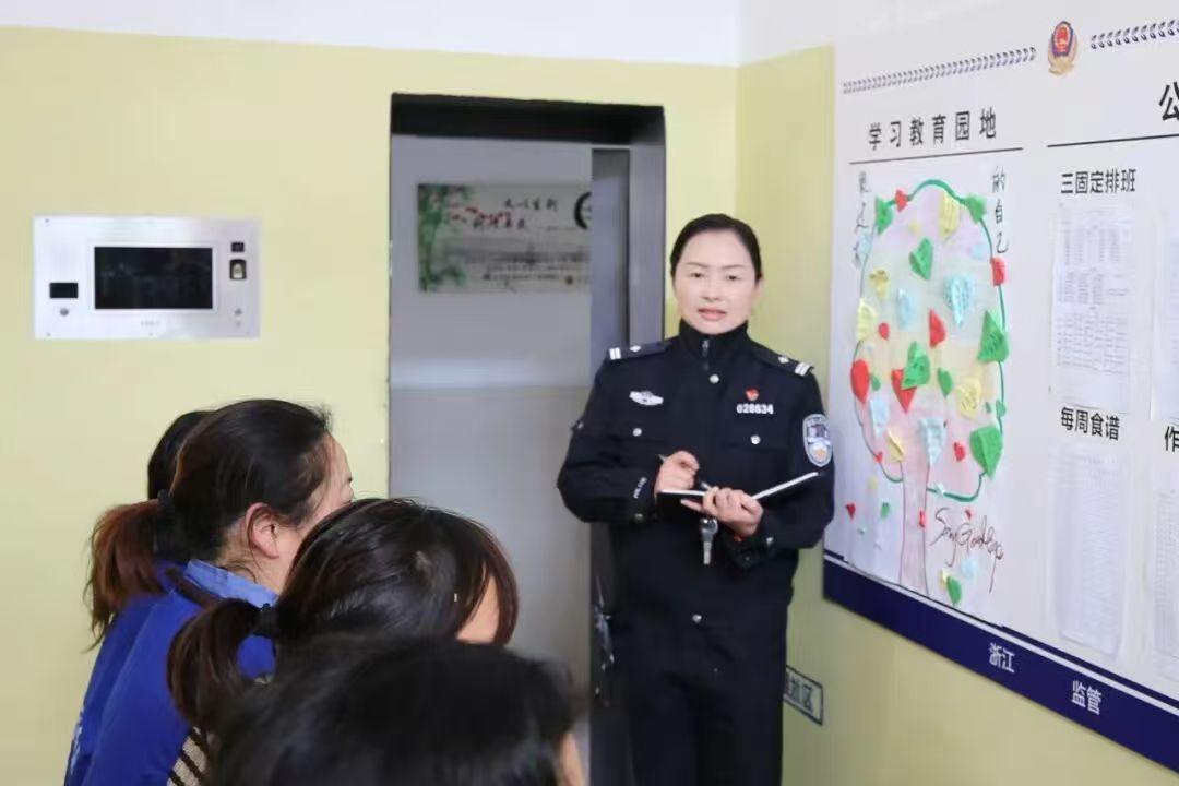 教導(dǎo)員汪佳靜在監(jiān)室布置學(xué)習(xí)任務(wù)