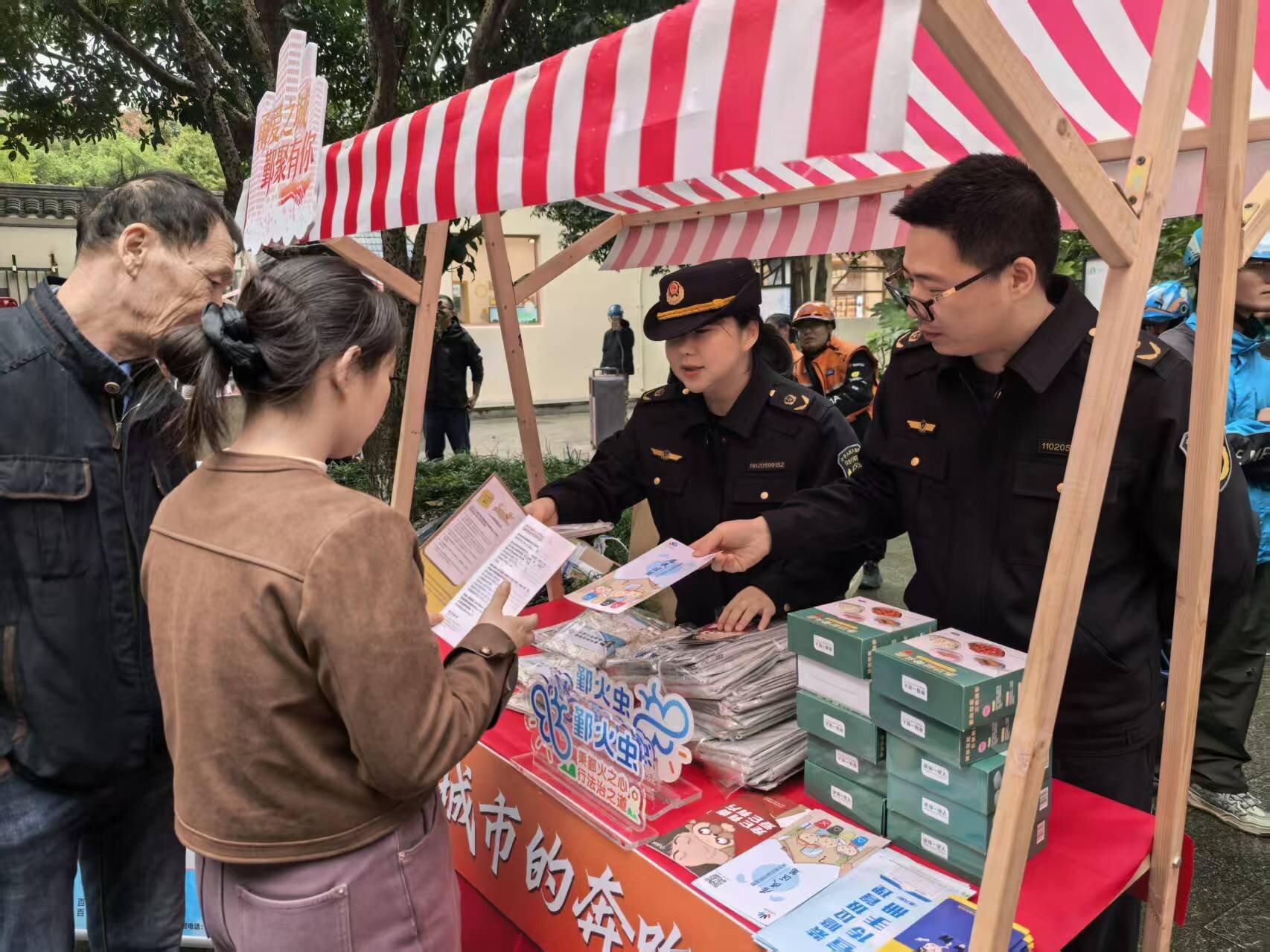 在活動(dòng)現(xiàn)場(chǎng),百丈中隊(duì)精心設(shè)立了法律法規(guī)咨詢宣傳點(diǎn),通過(guò)陳列宣傳展板、發(fā)放普法資料、現(xiàn)場(chǎng)答疑解惑等多種形式,向到場(chǎng)的從業(yè)人員深入淺出地解讀了垃圾分類、犬只管理、油煙管控、燃?xì)獍踩扰c新就業(yè)群體生活、工作息息相關(guān)的法律法規(guī)。宣傳點(diǎn)位人氣十足,宣傳活動(dòng)也獲得了在場(chǎng)新就業(yè)群體的積極響應(yīng)與廣泛好評(píng)。