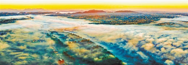11月25日,霧靄籠罩宜都,水汽氤氳,城市樓宇若隱若現(xiàn)。馮建攝(中經(jīng)視覺(jué))