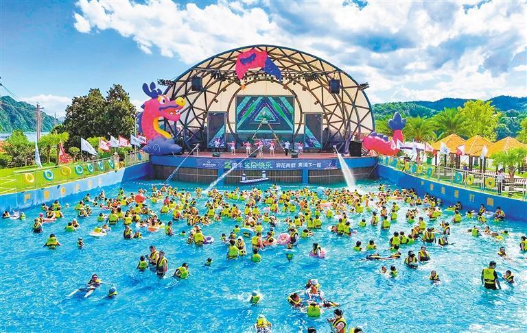 7月5日,清江奇幻水世界人頭攢動(dòng)。自2023年開(kāi)業(yè)以來(lái),該景點(diǎn)已成為當(dāng)?shù)叵募韭糜蔚臒衢T目的地。劉傳東攝(中經(jīng)視覺(jué))