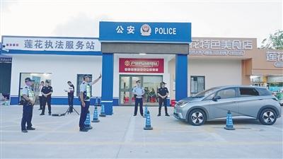 萬(wàn)寧蓮花服務(wù)區(qū)執(zhí)法服務(wù)站實(shí)行多警種聯(lián)合執(zhí)勤。