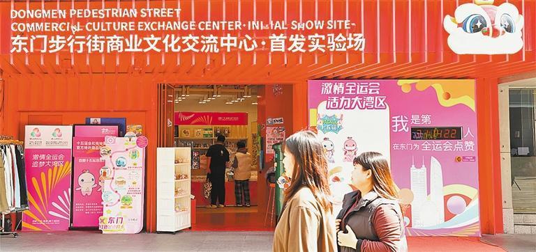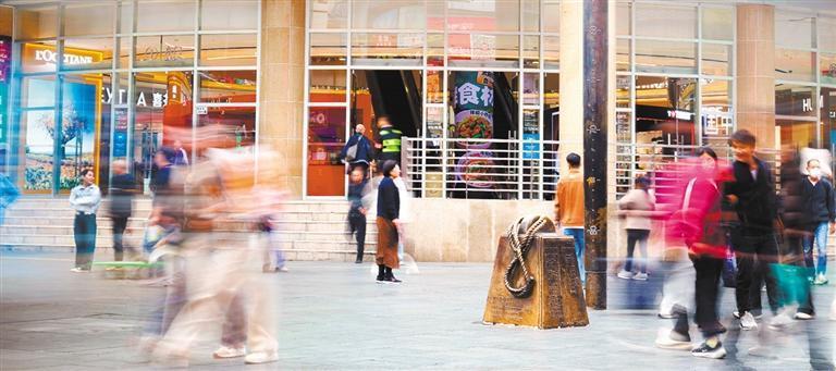11月21日,游客在東門步行街商業(yè)文化交流中心選購文創(chuàng)產(chǎn)品。該中心是品牌首發(fā)、首展的交流平臺(tái),定期聯(lián)合新進(jìn)品牌舉行聯(lián)展和快閃活動(dòng)。