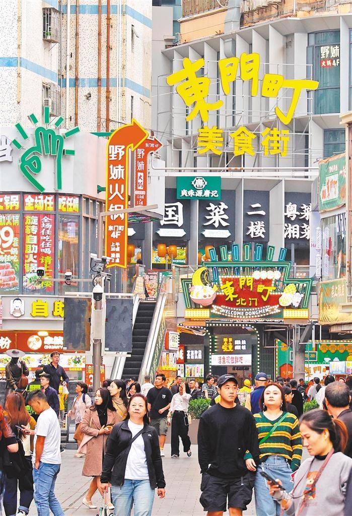 11月18日,東門老街內(nèi)的東門町美食城人流如織。