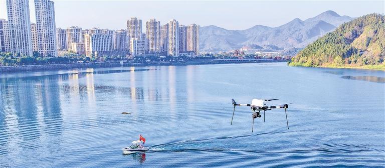 12月20日,位于福建省南平市順昌縣的富屯溪流域,工作人員正采取“無(wú)人機(jī)+摩托艇”的方式,開(kāi)展富屯溪流域生態(tài)保護(hù)巡查。近年來(lái),當(dāng)?shù)丶訌?qiáng)部門(mén)協(xié)同,利用科技賦能,精準(zhǔn)摸排隱患,繪就智慧生態(tài)治理新圖景。謝貴明 攝(中經(jīng)視覺(jué))