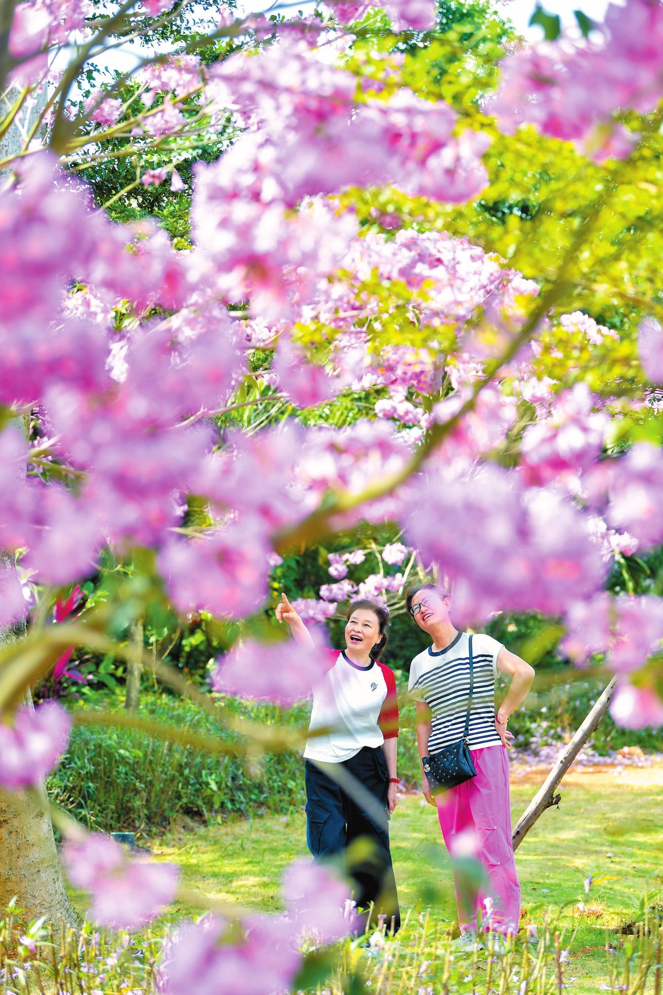 事實(shí)上,這并非??谑状螄L試以特色開花喬木打造網(wǎng)紅景觀。陳紅光說,早在2024年1月,??诰驮邶堉闉撤N植了50多株黃花風(fēng)鈴木,盛花期金燦燦的花朵掛滿枝頭,一度成為市民爭相前往的“打卡點(diǎn)”。
