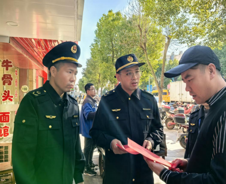 綜合行政執(zhí)法人員聯(lián)合市場監(jiān)管人員上門為新開商戶提供開店指導