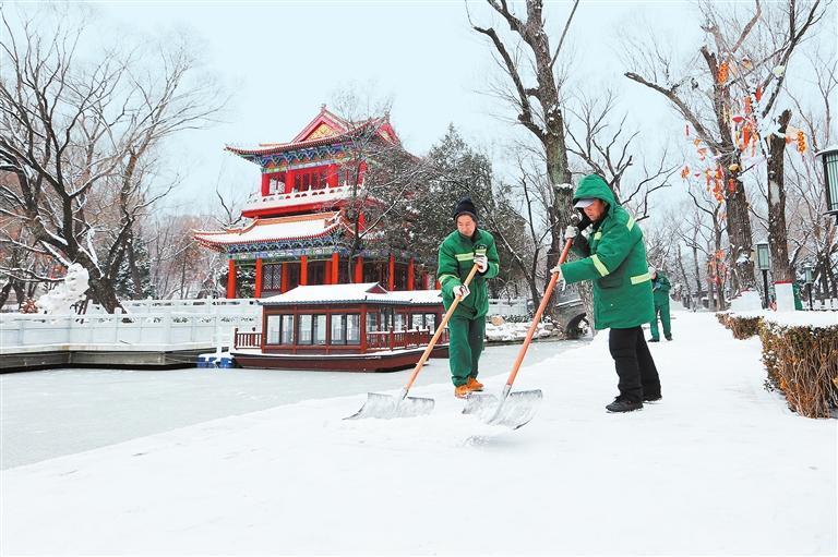 近日,平?jīng)鍪谐霈F(xiàn)降雪天氣,崆峒區(qū)環(huán)衛(wèi)工人及時清雪除冰,保障群眾日常出行安全。(通訊員 吳希會)