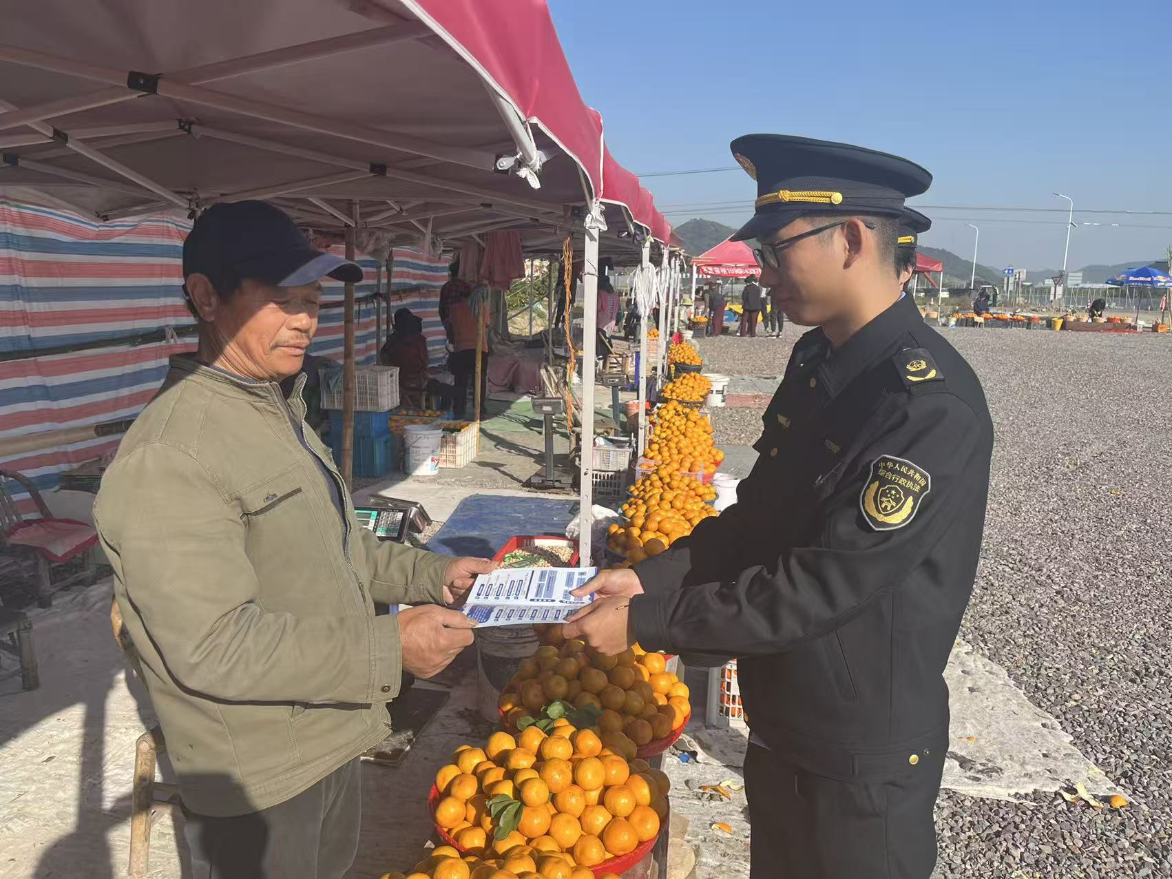 松岙鎮(zhèn)綜合行政執(zhí)法隊(duì)交出了一份充滿溫度的答卷——“橘香驛站”應(yīng)運(yùn)而生。執(zhí)法隊(duì)主動(dòng)踏勘、多方協(xié)調(diào),最終在沿海中線北側(cè)西岙村附近,精心規(guī)劃出30個(gè)統(tǒng)一標(biāo)識(shí)、整潔規(guī)范的臨時(shí)銷售點(diǎn)。這些站點(diǎn)選址科學(xué),兼顧地形、人流與安全性,不僅為橘農(nóng)遮陽(yáng)擋雨,更通過(guò)“定點(diǎn)、定容、定責(zé)”的柔性管理,實(shí)現(xiàn)了從“無(wú)序散賣”到“有序經(jīng)營(yíng)”的轉(zhuǎn)變。與此同時(shí),一場(chǎng)“護(hù)農(nóng)保暢”協(xié)同行動(dòng)同步展開(kāi)。執(zhí)法隊(duì)聯(lián)動(dòng)交警、派出所等多部門(mén),在重點(diǎn)路段增派執(zhí)勤力量,加強(qiáng)交通疏導(dǎo)與治安巡查,并積極開(kāi)展安全宣傳,引導(dǎo)果農(nóng)與顧客遵守秩序、文明交易。如今,“橘香驛站”已成為一道溫暖的風(fēng)景:攤點(diǎn)整齊有序,道路通暢安全,橘農(nóng)臉上洋溢著踏實(shí)笑容,過(guò)往車輛與顧客也能安心停留、放心選購(gòu)?!伴傧泱A站”托起的,不僅是果農(nóng)的增收路,更是一座小鎮(zhèn)在發(fā)展與秩序、人情與規(guī)則之間,尋得的溫暖平衡。
