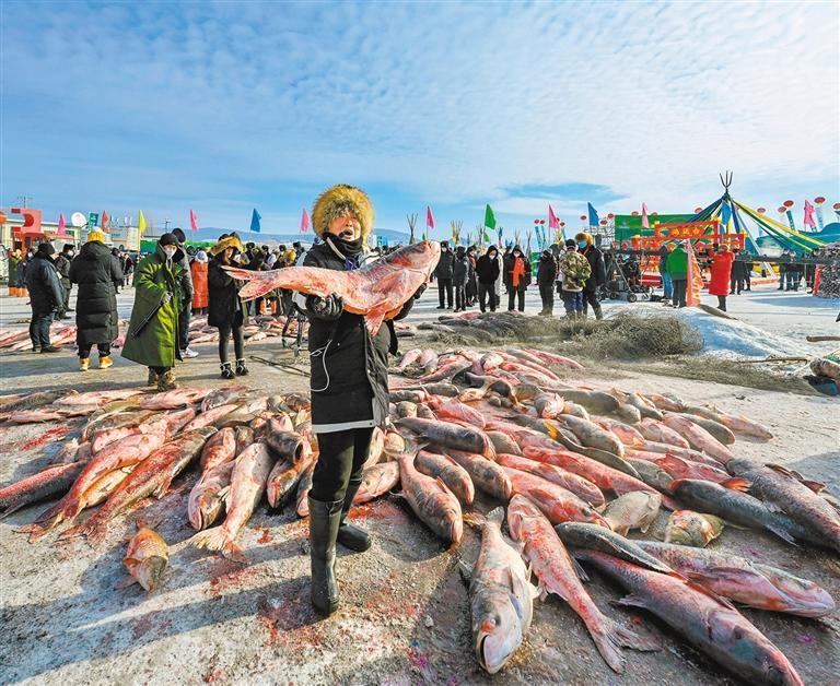 2023年2月16日拍攝的“鏡泊湖冬捕節(jié)”現(xiàn)場(chǎng)。當(dāng)?shù)匕讯都净顒?dòng)打造成推動(dòng)冰雪旅游發(fā)展的重要品牌。 唐偉東攝(中經(jīng)視覺(jué))