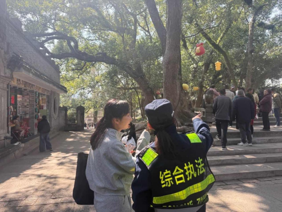 景區(qū)街巷里,“請(qǐng)照看好孩子”“這邊是最佳游覽路線”等溫馨提示不時(shí)響起。執(zhí)法人員化身“多面手”,忙碌在每一個(gè)需要幫助的角落:遇到帶著孩子的游客,主動(dòng)指引路線、告知休息點(diǎn)位;碰到對(duì)著導(dǎo)航手足無(wú)措的游客,耐心講解游覽攻略、貼心引路,偶爾冒出的幾句奉化方言,更添幾分煙火溫情;遇上走失孩童、遺失物品的游客,迅速行動(dòng)、多方聯(lián)動(dòng),全力幫助尋回。一句叮囑、一次攙扶、一場(chǎng)尋找,都是藏在值守里的責(zé)任與溫情。