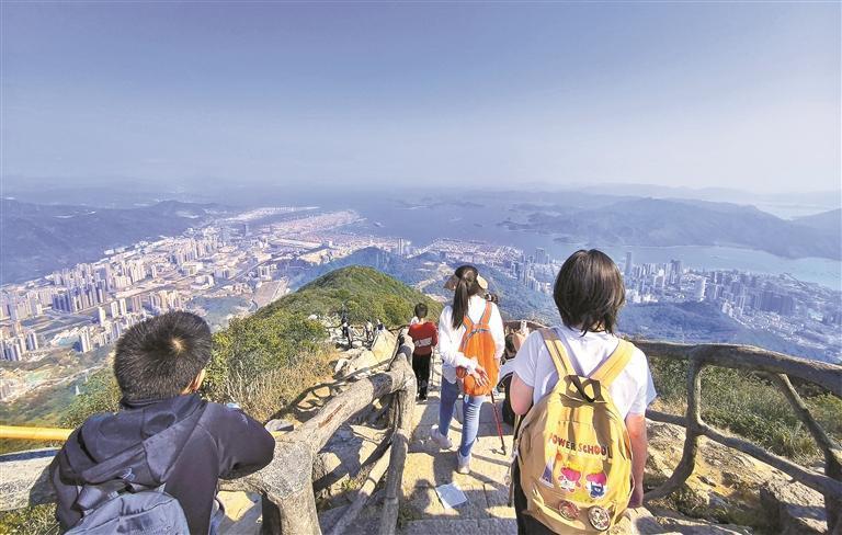 市民游客登上梧桐山頂。