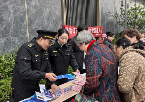 執(zhí)法人員在周宿渡社區(qū)興樾府小區(qū)外設(shè)立便民咨詢臺(tái),圍繞文明裝修、文明養(yǎng)犬、垃圾分類、市容環(huán)境等社區(qū)熱點(diǎn)問題向過往群眾開展普法宣傳?!靶^(qū)樹木屬于公共財(cái)產(chǎn),不可私自砍伐”“房屋裝修產(chǎn)生的垃圾需交給有資質(zhì)的單位清運(yùn)”……面對(duì)居民的提問,執(zhí)法人員郭鵬飛耐心地一一講解,引導(dǎo)群眾自覺遵守法律法規(guī),現(xiàn)場(chǎng)共發(fā)放宣傳資料80余份。