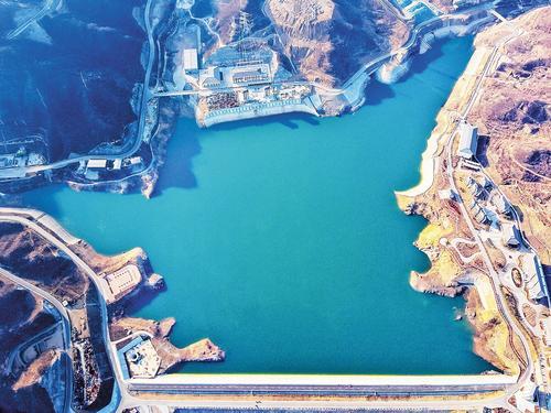 2月24日,無人機(jī)拍攝的國網(wǎng)新源河北易縣抽水蓄能電站下水庫。河北日?qǐng)?bào)記者 許佳奇攝