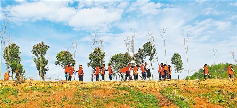 3月12日,重慶市萬(wàn)盛經(jīng)開區(qū)開展2026年春季義務(wù)植樹活動(dòng),人們?cè)诨纳狡律戏N下香樟、烏桕等樹苗。王瀘州攝(中經(jīng)視覺)