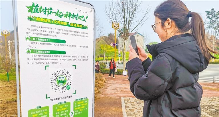 3月10日,湖北省宜昌市秭歸縣市民線上購(gòu)買林業(yè)碳票。當(dāng)?shù)赝瞥觥傲謽I(yè)碳匯+義務(wù)植樹”模式,讓市民實(shí)現(xiàn)手機(jī)“種碳”。周仕偉攝(中經(jīng)視覺)