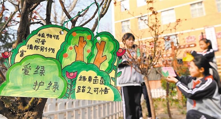 今年3月12日是我國(guó)第48個(gè)植樹節(jié)。3月12日,河北省邯鄲市復(fù)興區(qū)鐵路小學(xué)學(xué)生在小樹上掛上心愿卡。郝群英攝(中經(jīng)視覺)