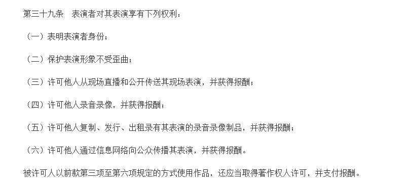 根據著作權法第三十九條,表演者享有以下權利: