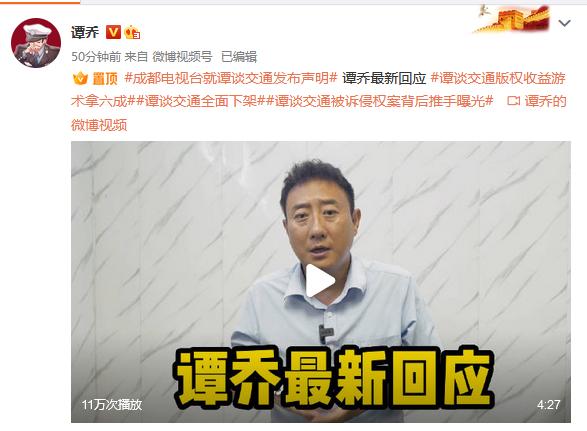 據上游新聞11日報道,成都廣播電視臺版權聲明顯示,成都廣播電視臺都市生活頻道(CDTV-3)為《譚談交通》所屬的《平安成都》和《紅綠燈》欄目的制作單位,“本單位擁有《平安成都》欄目、《紅綠燈》欄目以及《譚談交通》板塊的全部著作權,若上述欄目出現(xiàn)任何版權問題,由本單位全權負責”。