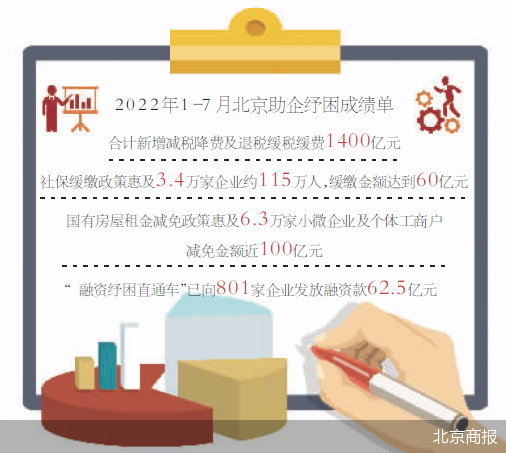 “截至8月1日,北京今年合計(jì)新增減稅降費(fèi)及退稅緩稅緩費(fèi)1400億元;社保緩繳政策惠及3.4萬家企業(yè)約115萬人,緩繳金額達(dá)到60億元;國有房屋租金減免政策惠及6.3萬家小微企業(yè)及個體工商戶,減免金額近100億元;“融資紓困直通車”已向801家企業(yè)發(fā)放融資款62.5億元?!贝鞣f介紹道。
