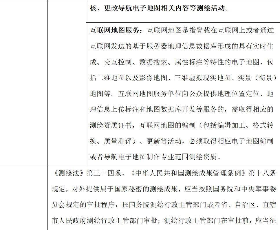 《通知》第四條規(guī)定:“根據(jù)《外商投資準(zhǔn)入特別管理措施(負面清單)(2021年版)》的規(guī)定,地面移動測量、導(dǎo)航電子地圖編制等屬外資禁入領(lǐng)域。取得這些專業(yè)類別測繪資質(zhì)的內(nèi)資企業(yè),應(yīng)嚴(yán)格執(zhí)行國家有關(guān)規(guī)定?!?/p>