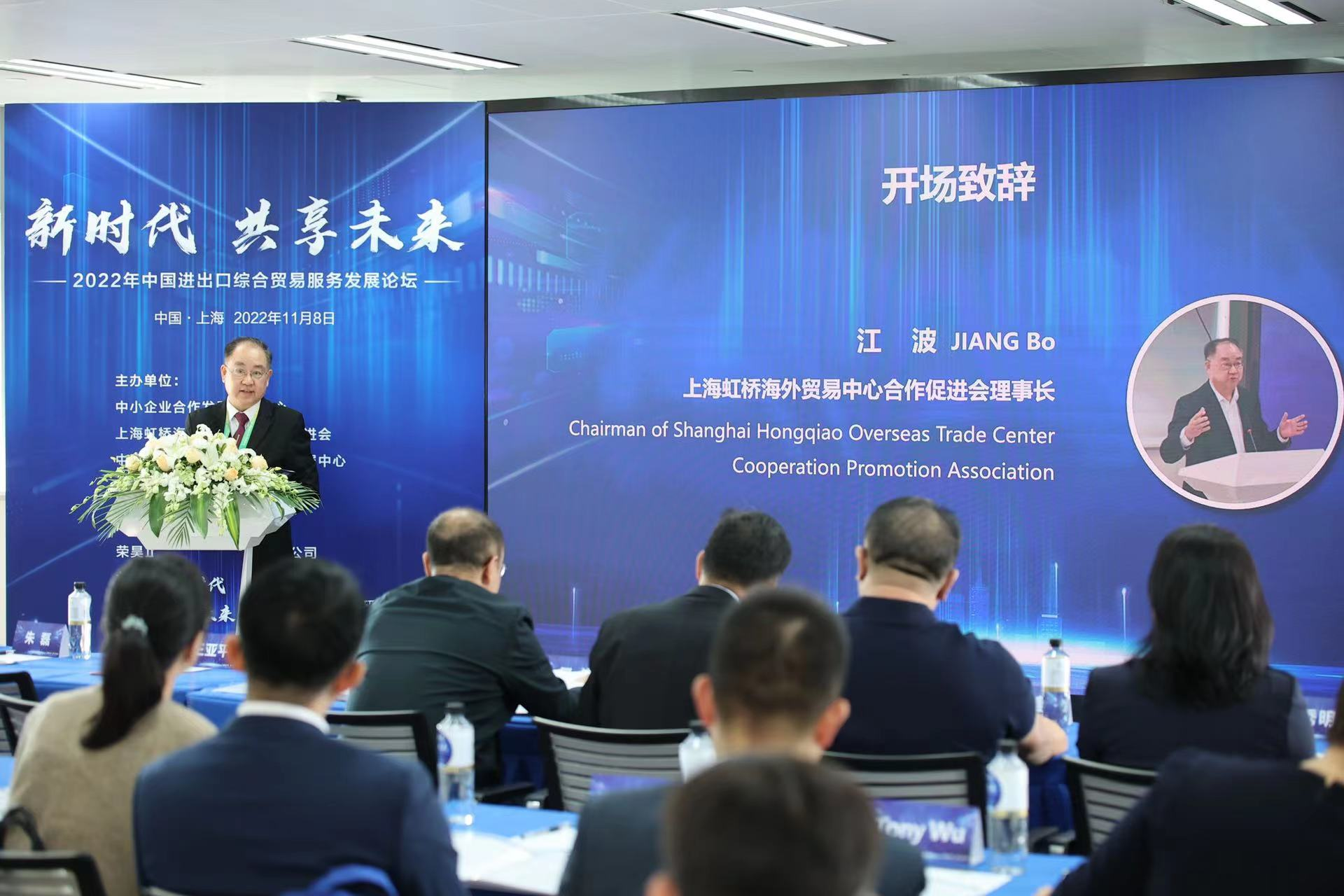 2022年11月8日,由中小企業(yè)合作發(fā)展促進中心、上海虹橋海外貿(mào)易中心合作促進會、中國政法大學法治與可持續(xù)發(fā)展中心共同主辦的“2022年中國進出口綜合貿(mào)易服務發(fā)展論壇”在上海虹橋海外貿(mào)易中心隆重舉行,政府領導、專家學者、企業(yè)代表共同探討綜合貿(mào)易服務變化及貿(mào)易合規(guī)挑戰(zhàn)。