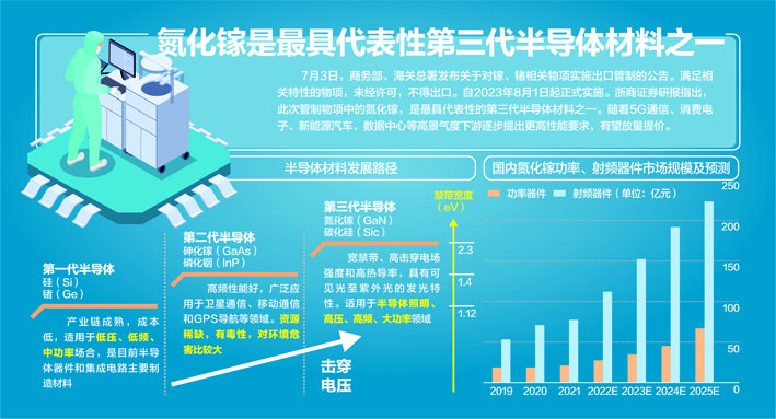 浙商證券的研報指出,氮化鎵(GaN)是最具代表性的第三代半導體材料之一,禁帶寬度達到3.4eV。更寬的禁帶寬度、更高的擊穿電場、更高的熱導率、更高的電子飽和速率及更優(yōu)的抗輻照能力,使得其在功率器件、射頻器件、光電器件領域大有作為。隨著5G通信、消費電子、新能源汽車、數(shù)據(jù)中心等高景氣度下游逐步提出更高性能要求,有望放量提價。