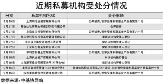 據(jù)《經(jīng)濟(jì)參考報(bào)》記者統(tǒng)計(jì),今年8月初至9月底,中基協(xié)網(wǎng)站公布針對私募機(jī)構(gòu)的紀(jì)律處分決定書38張、針對相關(guān)個(gè)人的紀(jì)律處分決定書88張,合計(jì)超120張。業(yè)內(nèi)人士分析認(rèn)為,針對私募行業(yè)相關(guān)問題的處分力度較之前明顯加強(qiáng)。此前的6月至7月,中基協(xié)針對私募機(jī)構(gòu)的紀(jì)律處分決定書僅有3張,針對相關(guān)個(gè)人的紀(jì)律處分決定書也僅有4張。