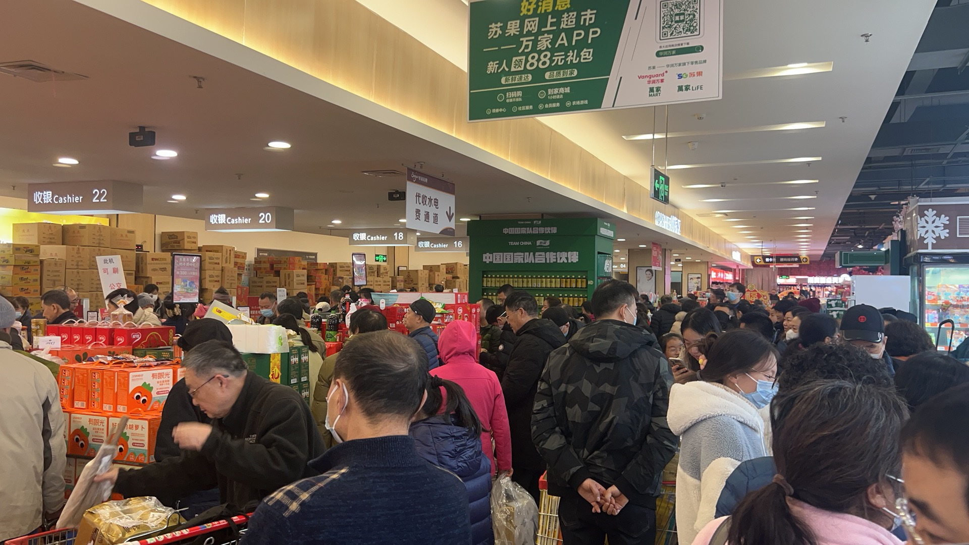 元旦期間,南京市鼓樓區(qū)一家大型蘇果門店,豐富的商品、給力的折扣,年節(jié)氛圍十分濃郁。消費(fèi)者手推購物車在貨架前選購心儀的商品,同時(shí)也把“美好生活”的向往裝進(jìn)了購物車。